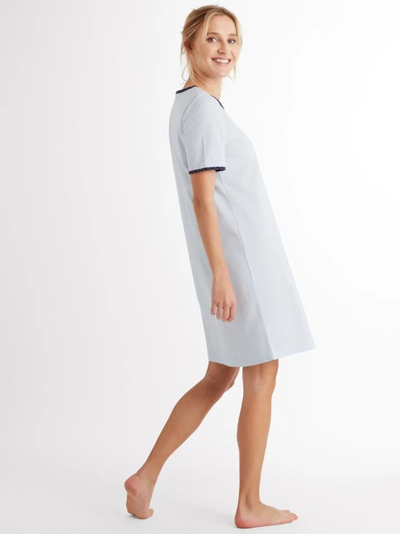 Das Kurzarm-Nachthemd aus der Serie „Women“ von RINGELLA präsentiert sich in einer sommerlichen Optik. Das Streifen-Design wird um den Blüten-Print auf der Brust perfekt komplettiert. Für ein angenehmes Tragegefühl sorgt das Material aus 100% Baumwolle.