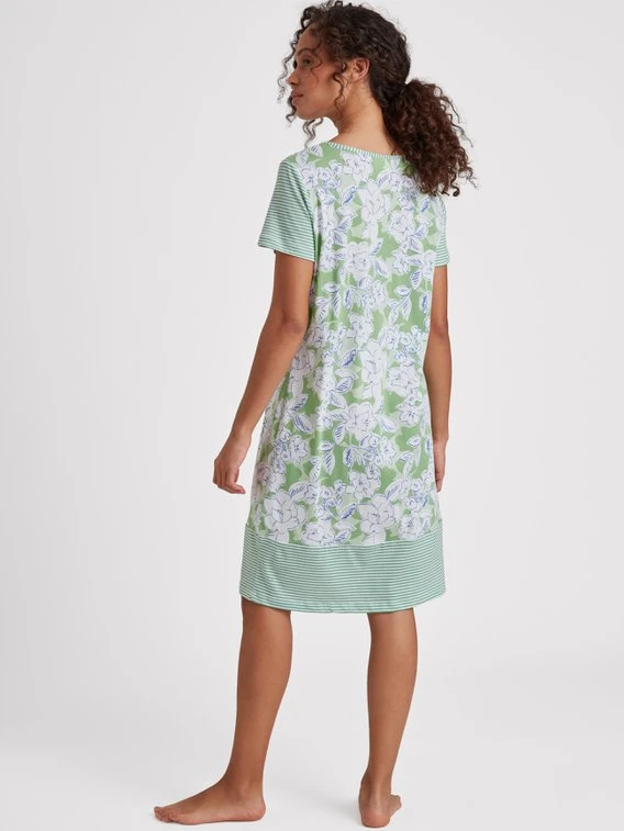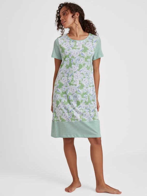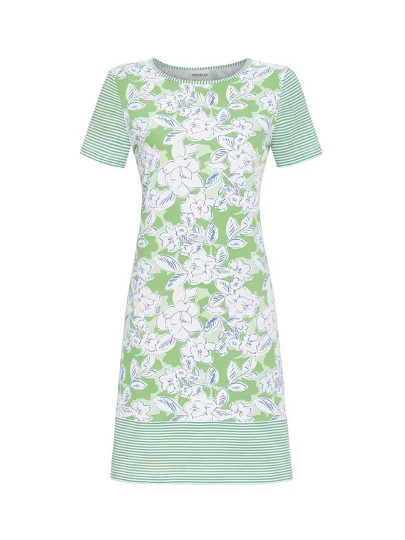 Das trendige Kurzarm-Sleepshirt im Muster-Mix der “Women”-Serie von RINGELLA schmiegt sich sanft an die Haut. Die weiche Baumwoll-Modal-Mischung in bewährter Single Jersey-Qualität garantiert jederzeit ein prima Tragegefühl. Ein schmales Ringel-Design an Ärmel, Halsauschnitt und am Saumabschluss fassen das großflächige Blütenmuster ein. Dieser schicke Style macht einfach Lust auf Sommer.
