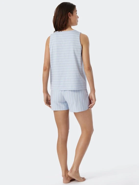In dem kurzen Schlafanzug von SCHIESSER aus der Serie “Just Stripes” ist Wohlfühlen angesagt. Das ärmellose Top mit rundem Ausschnitt umspielt den Körper angenehm. Zum lässigen Look passt die süße, längs gestreifte Hose mit elastischem Bund. Das Beste: Dank reiner Bio-Baumwolle ist das Lieblingsstück nicht nur weich, sondern auch nachhaltig.