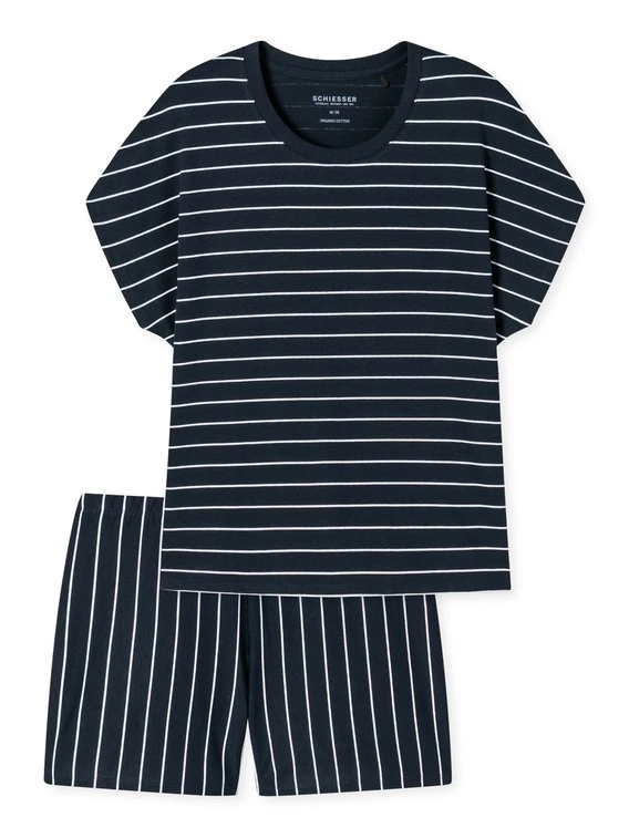 Du liebst es, gemütlich und dennoch trendig auszusehen? Mit dem “Just Stripes”-Kurz-Pyjama von SCHIESSER kannst Du Dein Zuhause in Stil und Komfort verwandeln! Der moderne Oversized-Style des T-Shirts und die lässige, kurze Hose machen den Look perfekt. Gedruckte Ringel runden den Look zusätzlich ab. Und das Beste: Nicht nur das Design ist einzigartig, sondern auch die Qualität. Der Schlafanzug besteht aus 100% Bio-Baumwolle, die Deinen Körper bequem umschmeichelt. Zudem ist er nachhaltig verpackt. Mit dem “Just Stripes”-Kurz-Pyjama von SCHIESSER wirst Du jede Nacht in Träume versinken!