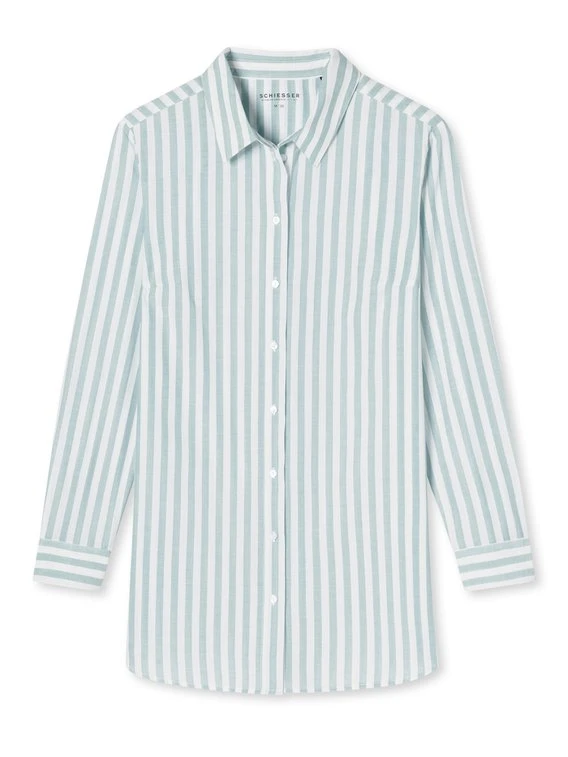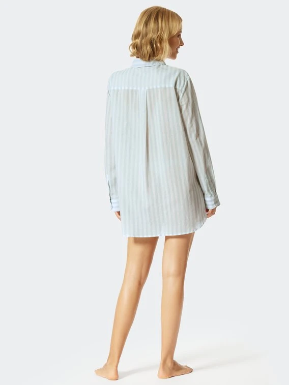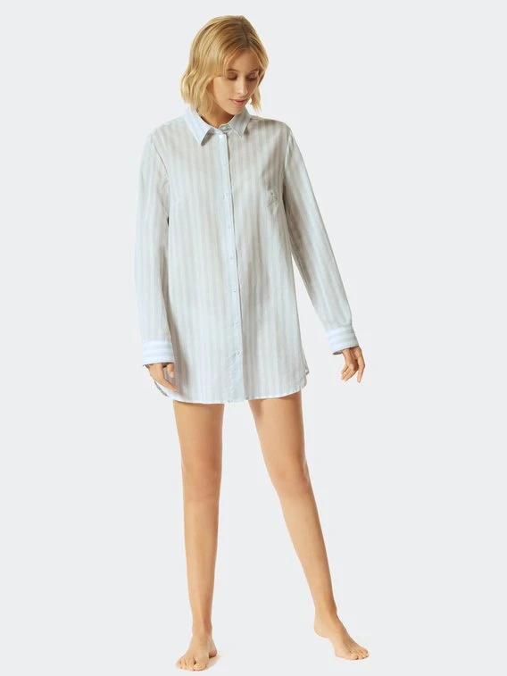 Höchster Komfort kombiniert mit zeitlosem Design, so präsentiert SCHIESSER das Hemd-Nachthemd aus der „Pyjama Story“ Serie. Das durchgeknöpfte Nachthemd überzeugt durch seinen hochwertig verarbeiteten Webstoff aus hautschmeichelnder Bio-Baumwolle. Die Querstreifen in Hellblau passen zum klassischen Look des Nachthemdes.