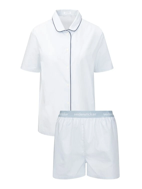 Der Kurz-Pyjama von SEIDENSTICKER aus der “Loungewear” Kollektion präsentiert sich im zeitlosen Streifen-Design. Das hochwertige Material aus 100% Baumwolle liegt angenehm weich auf der Haut und eignet sich ideal zum Relaxen oder Schlafen. Die Hose hat einen modischen Bund mit dem Markennamen rundherum.