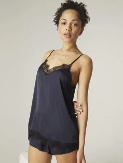 Mit der „Satin Secrets“ Kollektion präsentiert SIMONE PÉRÈLE sinnliche Nachtwäsche im modernen Look. Das Set aus Shorty und Spaghetti-Top besteht aus glattem Polyester-Satin und zarter Spitze. Die knappe Schnittform mit gewelltem Saum der Shorts und der fließende Schnitt des Tops schmeicheln der Figur und ermöglichen einen verführerischen Auftritt.