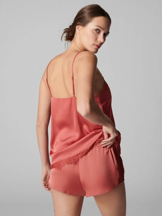 Mit der „Satin Secrets“ Kollektion präsentiert SIMONE PÉRÈLE sinnliche Nachtwäsche im modernen Look. Das Set aus Shorty und Spaghetti-Top besteht aus glattem Polyester-Satin und zarter Spitze. Die knappe Schnittform mit gewelltem Saum der Shorts und der fließende Schnitt des Tops schmeicheln der Figur und ermöglichen einen verführerischen Auftritt.