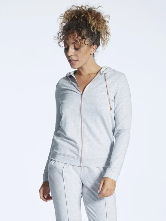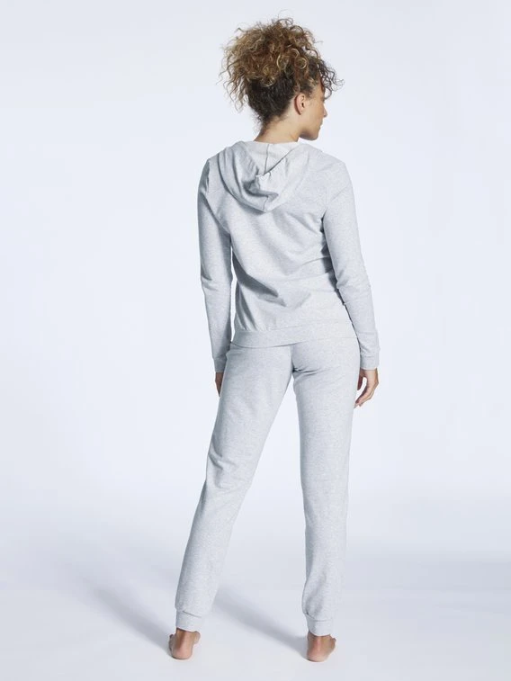 Das Lounge-Set der Serie „Every Night In Mix & Match“ von SKINY setzt sich aus einer gemütlichen Kapuzenjacke und einer locker sitzenden Bündchenhose in modischem Hellgrau zusammen. Das elastische Baumwollgewebe vermittelt ein angenehm natürliches und warmes Tragegefühl, um sich rundum zu entspannen.