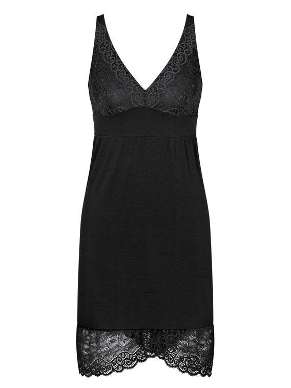 Das Negligé aus der “Lounge-Me Amourette” Serie von Triumph ist ein elegantes Nachtkleid aus einem elastischen, hautschmeichelnden Viskose-Mix. Filigrane und luftige Galloon-Spitze zieht sich entlang der Cups und des Saums und bereichert den verführerischen Style. Die längenverstellbaren Träger des Nachthemdes sorgen zudem für einen optimalen Sitz und hohen Tragekomfort.
