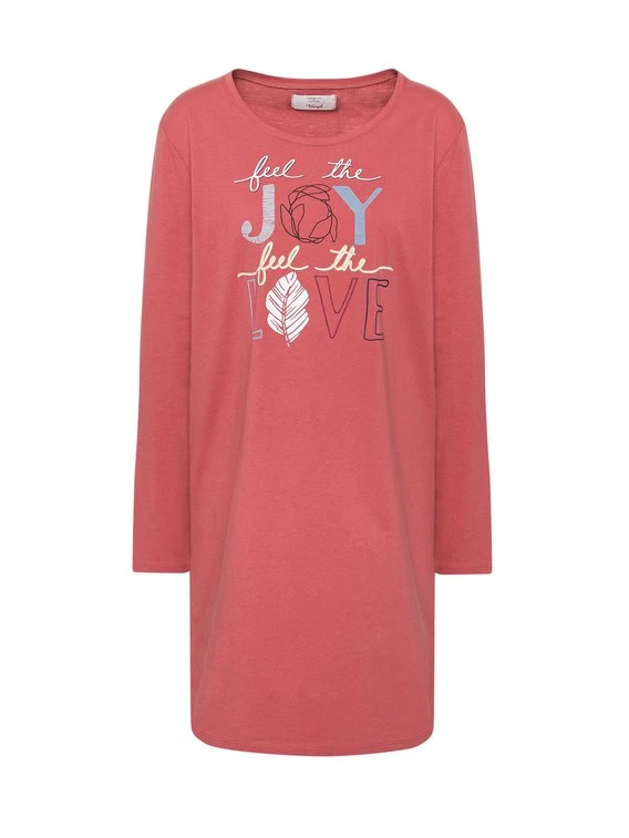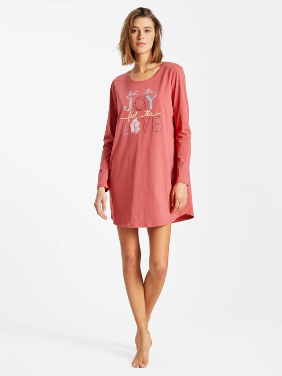 Feminines Langarm-Nachthemd von TRIUMPH aus der “Lounge-Me Cotton” Serie. Das Nachthemd überzeugt nicht nur mit komfortabler Schnittform und einer angenehm weichen Qualität aus hochwertigem Baumwoll-Jersey sondern auch mit einem frischen Druck auf der Front. Hier sind sanfte Träume garantiert.